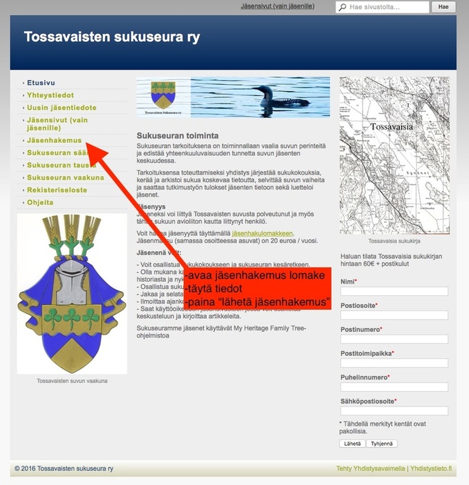 Jäsenhakemus ja käyttöoikeus webbisvustolle